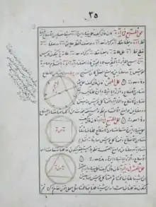 الصفحة 35 من كتاب فيما یحتاج إليه الصانع من أعمال الهندسة لأبي الوفاء البوزجاني حيث يذكر فيها كيفية رسم متسع في دائرة