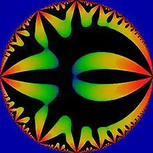 الجزء الحقيقي لG6 دالةً متغيرها q في القرص الواحدي.