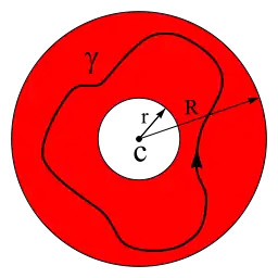 في حلقة، أشير إليها هنا باللون الأحمر حيث f(z)