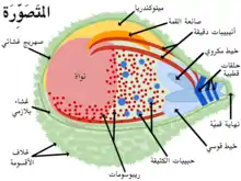 ![]() صورة مجهريةٌ إلكترونيةٌ ذات لونٍ زائف للطور البَوْغِيّ | |