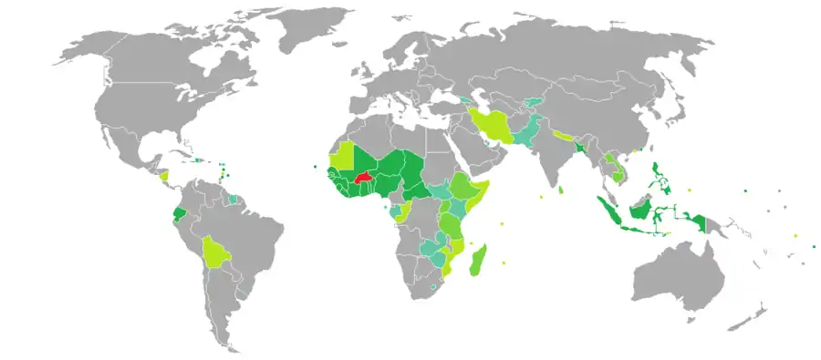 الدول والأقاليم التي تمنح تأشيرات لحاملي جواز سفر بوركينا فاسو: