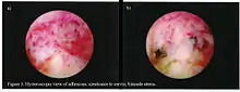 |CitationClass=تم تجاهله (مساعدة) - فالي RF، Sciarra JJ. التصاقات داخل الرحم: التشخيص تنظير الرحم، والتصنيف، والعلاج، ونتيجة الإنجابية. ي صباحا أبستت Gynecol عام 1988؛. 158:1459-1470