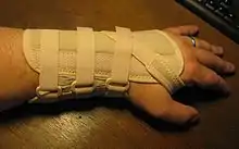 |CitationClass=تم تجاهله (مساعدة)[بحاجة لرقم الصفحة] - Premoselli, S; Sioli, P; Grossi, A; Cerri, C (2006). "Neutral wrist splinting in carpal tunnel syndrome: a 3- and 6-months clinical and neurophysiologic follow-up evaluation of night-only splint therapy". Europa Medicophysica. 42 (2): 121–6. PMID 16767058. الوسيط