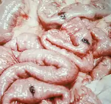 تشوهات وريدية توجد على الأمعاء في متلازمة الوحمة الزرقاء المطاطية الفقاعية.تصيب الأفات الأمعاء بشكل رئيسي كما في الصورة أعلاه، وتكون هشة سهلة النزف.