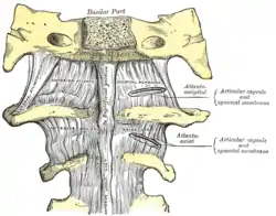 ![]() رسم من الأمام للمفصل الفهقي المحوري (بالإنجليزية: atlanto-axial joint) رسم من الأمام للمفصل الفهقي المحوري (بالإنجليزية: atlanto-axial joint) | |