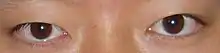 - هبوط في شقوق الجفون المتدلية (الفصل بين الجفون العليا والسفلى)[2]
