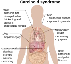 |CitationClass=تم تجاهله (مساعدة) - "Carcinoid syndrome: a statistical evaluation of 748 reported cases". Journal of Experimental & Clinical Cancer Research. 18 (2): 133–41. 1999. PMID 10464698. الوسيط