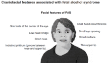 - الفجوة أو الاخدود بين الانف والشفة العلوية تتسطح عند التعرض للكحول اثناء الحمل. (طالع صفحة نثرة).