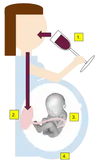 يبدو أن الجنين البشري معرض لخطر ثلاثي من استهلاك الأم للكحول:[27][28]