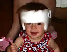 - تشوه الجمجمة الانحرافي plagiocephaly نتيجة التحام الدرز التاجي واللامي في طرف واحد