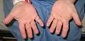 يد شخص مع لانجر–Giedion متلازمة عرض مميزة أصابع قصيرة.