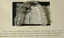 المثبات المصنوع بالفراغ (وهو في هذه الصورة للفك العلوي) والكلام في الخلفية عن مثبات هاولي في بداياته.