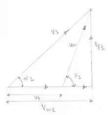 مثال لمثلث سرعة مرسوم لمدخل آلة توربينية. يرمز الرقم "1" إلى أن السرعات عند الدخول.