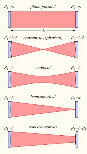 يعكس المرنان الشعاع الليزري على نمطين اثنين، نمط طولي [الإنجليزية] ونمط عرضي [الإنجليزية]. نمط الانعكاس الطولي يتفاوت في التردد بينما يتفاوت النمط العرضي في التردد والشدة الليزرية