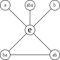 في هذا المخطط، تكون العقدة e هي العقدة المتجاورة مع جميع العقد الأخرىات، وذلك لأنها متصلة مع جميع العقد الأخرى بأضلاع.