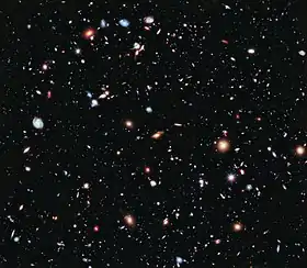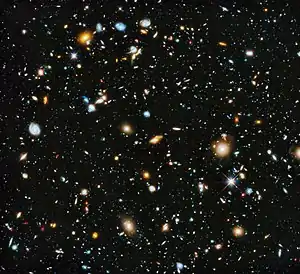 وكذلك من الأبحاث الحديثة: حقل هابل السحيق، فقد سلط على جزء فارغ نسبياً من الفضاء ليكشف أن في الكون ما مجموعه حوالي 125 مليار مجرة.[78] بالإضافة إلى أن التطورات الكبيرة في مجالات الرصد أظهرت أن هناك مجرات أخرى غير تلك التي رصدها هابل بسبب وجود الغبار الكوني في قرص مجرتنا وتحاشد النجوم اللذان يمنعاننا من رؤية ما خلفهما. ويرى العلماء أن هناك الكثير من المجرات الجديدة غير المكتشفة في تلك المنطقة بالتحديد.[79]
