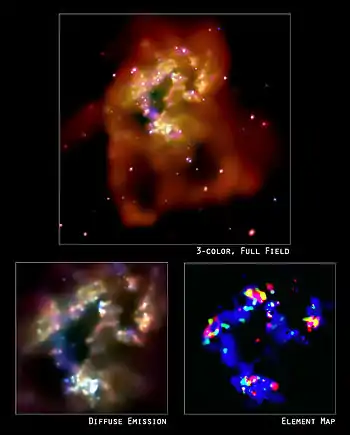 يبلغ عرض الصورة 8و4 دقيقة قوسية. ويعطي جهاز ACIS الألوان كالآتي: الأحمر لطاقة أشعة إكس بين 3و0 - 65و0 كيلو إلكترون فولت، واللون الأخضر لأشعة سينية طاقتها بين 65و0 - 5و1 ألف إلكترون فولت، واللون الأزرق للأشعة السينية ذات طاقة بين 5و1 - 0و6 كيلو إلكترون فولت keV.