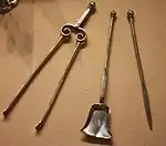 ![]() | الجرافة جرافة المدفأة (انظر صورة الأداة الوسطى) | من أنواع الحديد الناري المُستخدم في المدفأة. تُستخدم في التعامل مع رماد الخشب. |