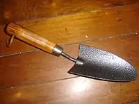![]() | جرافة البستنة | جرافة صغيرة بشكل عام، وذات تنفيذ فردي للحفر والتجريف والتوزيع، أو معالجة الأتربة أو مواد أخرى كبيرة الحجم (مثل ملاط). في أعمال البستنة والحدائق، تُفيد في الزراعة وغرس النباتات في أوعية فيما يتعلق بثقب فتحات وتفتيت الكتل الصلبة الموجودة في التربة. عادةً ما تكون لجرافات البستنة شفرات قوية وضيقة ذات أطراف مدببة. فهي نوع [صغير] من الجاروف. |