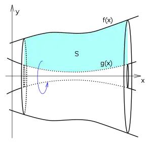 الشكل التالي ناتج عن دوير المنطقة المستوية المحصورة بين f وg