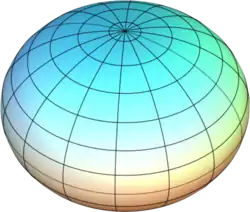 حيث f هي التفلطح أو الانحناء ,a هو نصف القطر الكبير للالبسوئيد، و b نصف القطر الصغير .