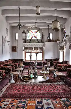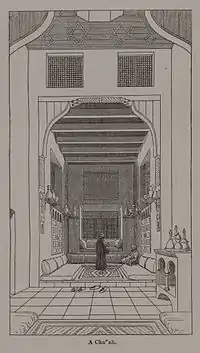 أحيانا توجد غرفة معلقة تطل على المجلس من الداخل بواسطة مشربيات وتستخدم كمجلس للنساء، تستخدم هذه الغرفة غالباً عندما تستدعي الحاجة إلى الحديث مع بعض النساء مثلا عند الخطبة أو الزواج.
