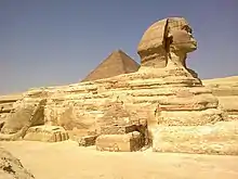 أبو الهول هو تمثال لمخلوق أسطوري بجسم أسد ورأس إنسان وقد نحت من الحجر الكلسيّ[6]، ويقع على هضبة الجيزة على الضفة الغربية من النيل في الجيزة، مصر، ويعد أبو الهول أيضاً حارساً للهضبة.