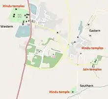 .[12] تنقسم المعابد في خاجوراهو بشكل عام إلى ثلاثة أجزاء: المجموعة الشرقية، المجموعة الجنوبية والمجموعة الغربية حيث يسمح فقط للمجموعة الغربية وحدها بجولة بصحبة مرشد سياحي باعتبار أنه يتم إرشاد السياح من خلال المعابد الثمانية. هناك أيضا جولة بصحبة مرشد تم تطويرها من قبل هيئة المسح الأثري للهند والتي تتضمن رواية لتاريخ المعبد والهندسة المعمارية. [64]