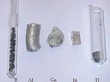 تحوي هذه المجموعة العناصر التالية: البورون والألومنيوم والغاليوم والإنديوم والثاليوم بالإضافة إلى نيهونيوم