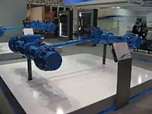 ناقل حركة يدوي بالعجلات الأمامية، يُظهر صندوق التروس والمحرك النهائي مدمجان في نفس الهيكل