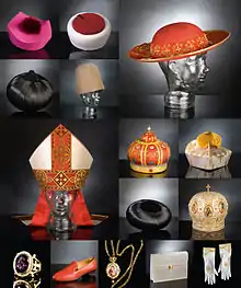 الساتورنو (كابيلورومان)نمط من قبعات الأساقفة المموجة والمطرزة بالذهب.