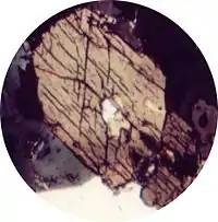 - التحلل (بالإنجليزية: Alteration): حيث يظهر سطح المعدن تحت المجهر عديم اللون وعند تعرضه لعمليات التجوية يتحول إلى معدن طيني فيظهر سطحه تحت المجهر غير نقي مثل معدن البلاجيوكليز.[8]