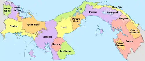 تنقسم بنما إلى 13 وحدة إدارية منها 10 محافظات (بالأسبانية: Provincias ) و ثلاث دوائر (بالأسبانية : Comarcas Indígenas ) وتختصير بكلمة كوماركا للمفرد وللجمع كوكاركاس .