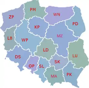 منذ إعادة التقسيم الإداري عام 1999 والبلاد مقسمة إلى 16 محافظة (województwo). كل منها له برلمانها الخاص وحكومتها ورئيسين واحد معين (Wojewoda) من الحكومة المركزية وواحد منتخب (Marszałek) من البرلمان. المقاطعات البولندية هي: