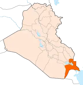![]() موقع محافظة البصرة بالنسبة للعراق موقع محافظة البصرة بالنسبة للعراق | |