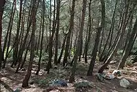 تنتشر على طول الطريق الشمالي بين اللاذقية وكسب، تتميز بانتشار أشجار الصنوبر والبلوط والكرز، تكثر فيها المطاعم والمقاصف وتعتبر محمية طبيعية في سوريا، تظهر الصورة دغلة كثيفة في غابات الفرنلق.[5] |