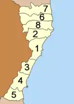 تنقسم المحافظة الي 8 مقاطعات رئيسية و48 بلدية و388 قرية.