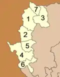 تنقسم المحافظة الي 7 مقاطعات و 45 بلدية و 402 قرية .