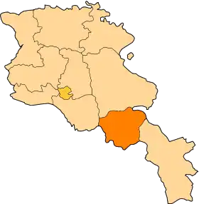 ![]() Location of Vayots Dzor within Armenia موقع محافظة وايوتس جور | ||