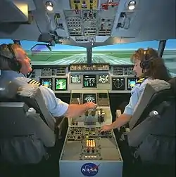 تشيع أنظمة المحاكاة (بالإنجليزية: simulator) في الطيران المدني والحربي حيث يتمرن الطيارون الجدد على أجهزة محاكاة تكون صورة طبق الأصل مما قد يجري على الطبيعة. مما يمكن الطيارين من التحكم في الأحوال الحرجة مثل العواصف أو عطل أحد المحركات، حيث تجعلهم وكأنهم يقودون طائرة حقيقية مع فرق بسيط هو أنه أثناء المحاكاة مسموح لهم بالخطأ الشيء الذي قد يكون مميتا إذا حدث في الواقع.