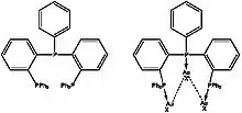 عندما تعالج الربيطة الموجودة على يسار الصورة مع 3 مكافئات من هاليد الذهب الأحادي، بحيث تتناسق كل مجموعة فوسفين إلى ذرة ذهب، تحدث هنالك ظاهرة تآثر محب للذهب بين ذرات الذهب بشكل يعيق الدوران الحر حول الرابطة الأحادية. يقاس هذا التآثر المحب للذهب بدرجة الحرارة اللازمة لاستعادة الدوران الحر على مقياس مطيافية الرنين المغناطيسي النووي.[1]