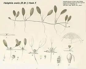 محب الملح البيضوي (الاسم العلمي: Halophila ovalis) هو نجيل بحري ينتمي لفصيلة الحب المائية، وهو نبات عشبي صغير ينمو في قيعان البحار، وفي أنظمة مياه مالحة أخرى في منطقة المحيط الهادي الهندي. وُصِف لأول مرة من قبل عالم النباتات روبيرت براون بمسمى (الاسم العلمي: Caulinia ovalis)، وقام جوزيف هوكر بتحويله لجنس محب الملح في كتابه فلورا طلتروس Flora Tasmaniae المؤلف عام 1858م. ينمو هذا النبات على الرمال الناعمة أو الطبقات الطينية حول الشعاب ، والمصبات، والجزر، ومناطق البحر والحلي. ولها أوراق بيضاوية المظهر، تنمو على السيقان البارزة من الجذمور أسفل التربة. ويمكن أن تنمو جذورها ليصل طولها حتى 88 مليمتر، وتكون مغطية بشعيرات جذرية دقيقة. وتتواجد على المروج التي تغطي الضفف الرملية. ترتيب النبات أسفل وأعلى الأرض يوفر الاستقرار لقاع البحر، وكذلك يوفر موطن لأنواع حية آخرى. وتتغذى حيوانات الأطوم على هذا النجيل البحري، ولذلك يُعرف أيضاً باسم عشب الأطوم.