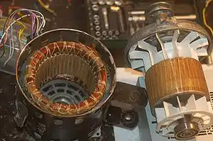 أما ثانيهما فهو المحرك المتزامن وفيه ينتقل مباشرة إلى دائرة الدوار.
