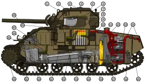 في السنوات التي سبقت الحرب العالمية الثانية، ظهرت الحاجة إلى المركبات المدرعة، و كانت كيفية تشغيل هذه المركبات مشكلة واجهت المصممون، الذين توصلوا في النهاية لاستخدام محركات الطائرات و من بينها المحركات الشعاعية. و أعطت محركات الطائرات الشعاعية نسبة قدرة إلى وزن كبيرة و كانت أكثر اعتمادية من المحركات الخطية للمركبات في ذلك الوقت. كان لهذا الاعتماد جانب سلبي في أنه لو وضعت المحركات رأسيا كما في إم 3 لي و إم 4 شيرمان، سيعطي قطرها الكبير ظل أكبر للدبابة مقارنة بالتصاميم المستخدمة للمحركات الخطية. كونتيننتال أر-670، محرك طائرة ذو 7 أسطوانات، حلق أول مرة في عام 1931، و انتشر بشكل واسع كمحرك للدبابات، حيث تم تركيبه في إم 1 كومباكت كار، إم 2 لايت تانك، إم 3 ستوارت، إم 3 لي، إل في تي-2 واتر بفالو. جيبيرسون تي-1020، محرك طائرة شعاعي يعمل بالديزل، استُخدم في إم 1 ايه 1 إي 1، بينما استُخدم كونتيننتال أر 975 في إم 4 شيرمان، إم 7 بريست، قانصة الدبابات إم 18 هيلكات، و مدافع الهاوتزر ذاتية الدفع إم 44 .