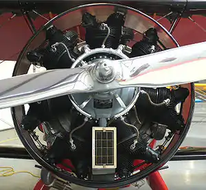 و قد تم التغلب على مشكلة تبريد الأسطوانات، أحد المشاكل المبكرة الرئيسية في المحركات الشعاعية الثابتة، بتوليد المحرك لتدفق هواء التبريد الخاص به.[6]