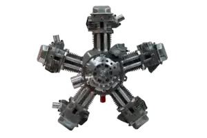 و في 1903-1904 استخدم جاكوب إليهمير خبرته في تصنيع الدرجات النارية في تصنيع أول محرك شعاعي يُبرد بالهواء، محرك ثلاثي الأسطوانات، اٌستخدم كأساس لنموذج خماسي الأسطوانات في عام 1907. و استخدمه في طائرته ثلاثية الأجنحه و قام بالعديد من قفزات الطيران الحرة.[4]