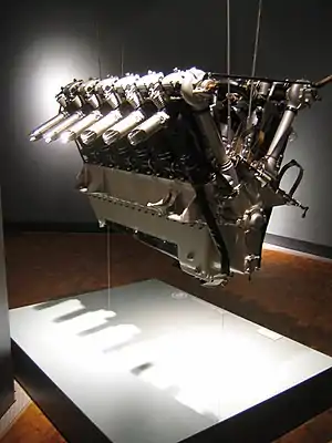 بحلول نهاية الحرب العالمية الأولى، ترسخت محركات V12 في الطيران وشغلت بعض المقاتلات و قاذفات القنابل الجديدة والكبيرة، وكانت تُنتج بواسطة شركة رينو وشركة صن بيم. استخدمت العديد من المناطيد محركات 12أسطوانة من الصانعين الألمان مايباخ و شركة محركات دايملر. أنتجت أيضا دايملر النمساوية في الامبراطورية النمساوية المجرية محركات V12 صُممت بواسطة فرديناند بورس، وبلغت قدرة أول محرك 300 حصان والتالي 345 حصان واستُخدموا في الطائرات المائية الكبيرة في أسطول القوات الجوية النمساوي المجري. أنتجت شركات أمريكية عديدة محرك ليبيرتي إل-12. بعد انتهاء الحرب العالمية الأولى بفترة قصيرة، شغلت محركات V12 أولى الطائرات العابرة للأطلسي الطائرات المائية كيرتز إن سي (4 محركات ليبيرتي إل-12) وأول طائرة عابرة بدون توقف بواسطة ألوك وبراون في فيكرز ميمي (محركين رولز رويس إيجل) وأول سفينة هوائية عا السفينة الهوائية طراز أر-34 (5 محركات شعاع الشمس صن بيم أفريدي).