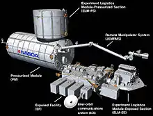 وقدمت اليابان مختبر كيبو، الذي يضم حجيرة أو وحدة مكيفة الضغط وذراعا آلية ووحدة ثالثة هي عبارة عن منصة خارجية مكشوفة للتجارب وعربات الأغراض اللوجستية.[17]