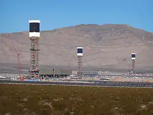 يحيط كل برج 173.000 من المرايا المسطحة تركز ضوء الشمس على خزان المياه الموجود اعلاه . يبلغ ارتفاع البرج نحو 150 متر ، وينتج 130 ميجاواط ، تكفي لإمداد نحو 30.000 بيت بالتيار الكهربائي. يستمر عمل المحطة عدة ساعات بعد غروب الشمس من الحرارة المخزونة في البرج ، كما يستعان بخزانات أملاح منصهرة لتخزين الحرارة ، فتقوم بإنتاج الكهرباء أثناء الليل أيضا.