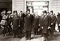 خروج الملك فاروق الأول من محطة مصر مع الوزراء وهو يؤدي التحية العسكرية.